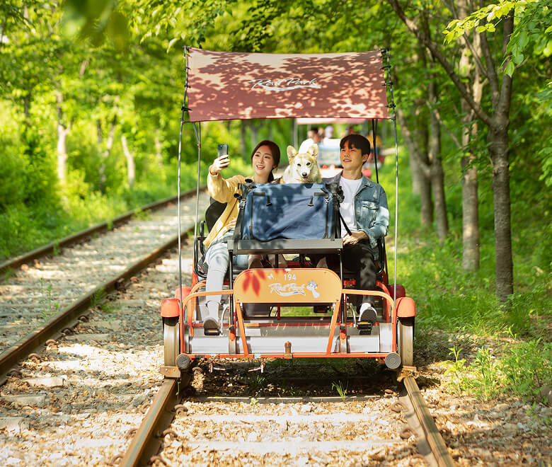 해 지는 저녁 다채로운 별빛의 새로운 레일바이크 코스가 펼쳐집니다.